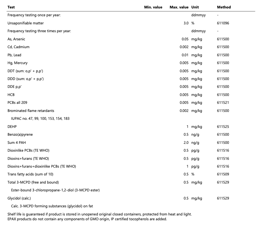 EPA / DHA ≥ 400 mg / ≥ 200 mg